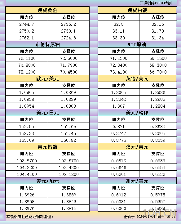 基本面上美元指数持续走强,因美联储降息预期放缓,同时美国大选落地,支撑美元,施压非美,日内留意美国CPI数据是否使得美元调整,从而支撑非美反弹修正